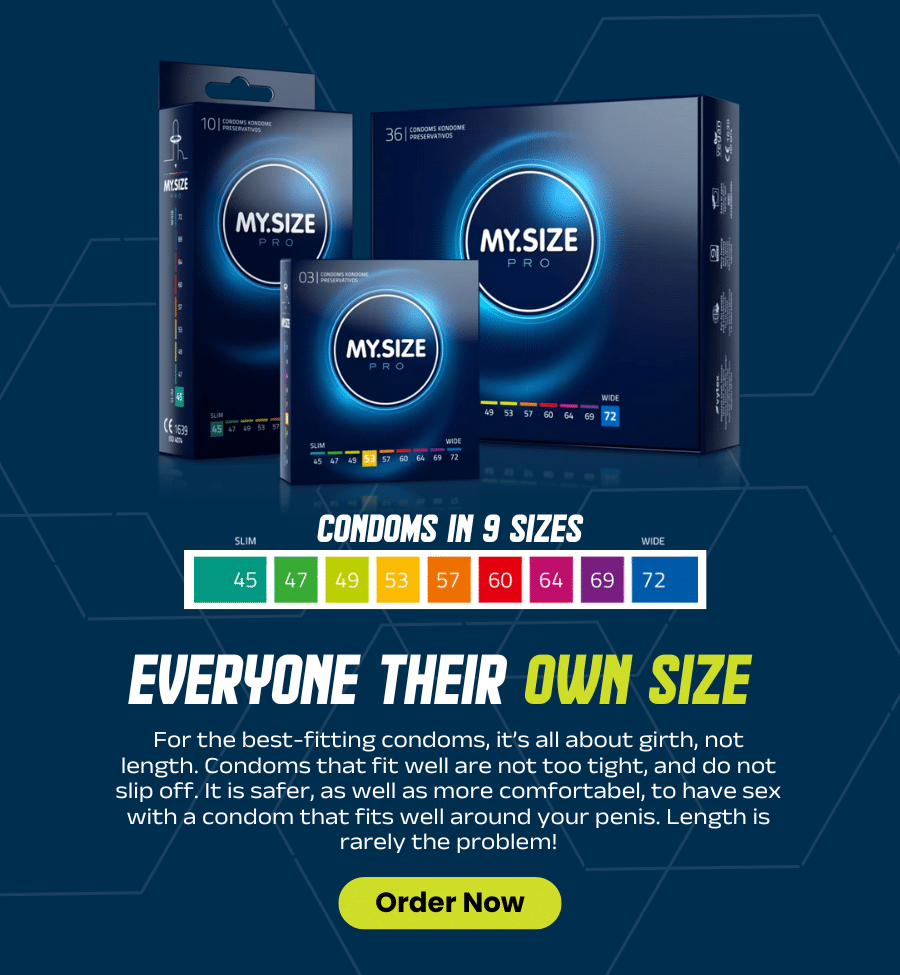 The different ways to measure your condom size are meant to help you find an indication of what size condoms will fit best. But every penis is different and does not have exactly the same girth everywhere along its length. Moreover, condoms are also very elastic. Compare it to shoe shopping: you can measure your shoe size, but then trying on is the best way to determine which size really fits you best. So it is with condoms. That’s why you can also find fitting kits with different sizes of condoms in our shop.
